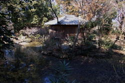 本堂裏の快楽園は、池の周囲を一巡できる回遊式となっており、池の前後左右には多くの樹木が繁っている。又、蓮池の中には茶亭もある。 -